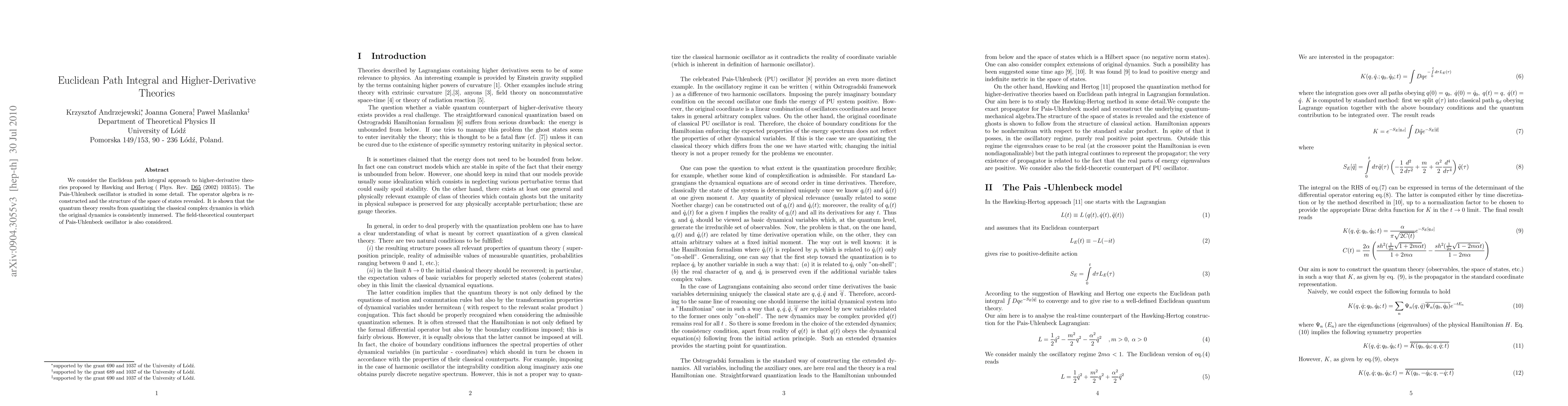 We consider the Euclidean path integral approach to higher-derivative theories proposed by Hawking and Hertog (Phys. Rev. D65 (2002), 103515). The Pais-Uhlenbeck oscillator is studied in some detail. The operator algebra is reconstructed and the structure of the space of states revealed. It is shown that the quantum theory results from quantizing the classical complex dynamics in which the original dynamics is consistently immersed. The field-theoretical counterpart of Pais-Uhlenbeck oscillator is also considered.
