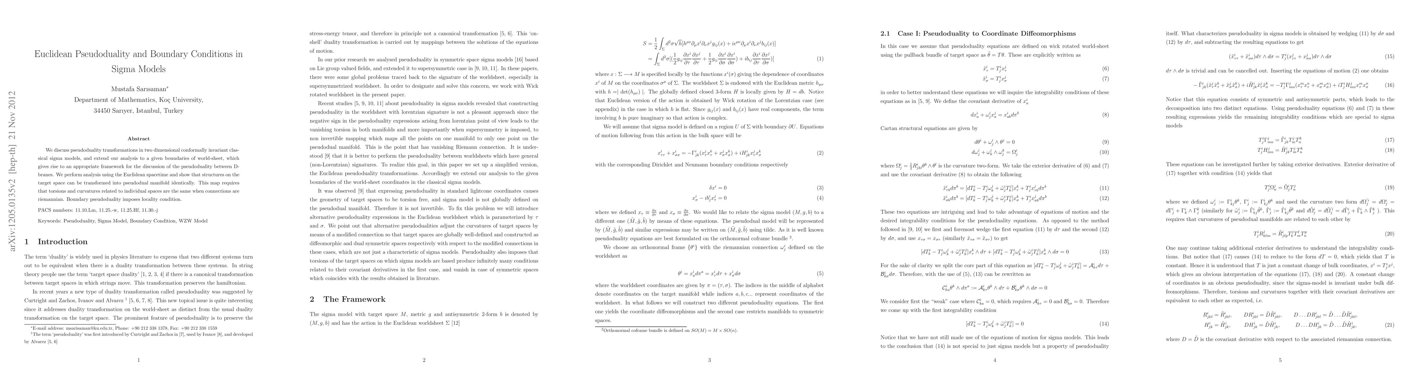 This paper explores pseudoduality in two-dimensional conformally invariant sigma models, demonstrating how Euclidean transformations can map structures on the target space to pseudodual manifolds. It also examines the implications of boundary conditions on world-sheet D-branes, establishing a framework for pseudoduality and imposing locality conditions.
