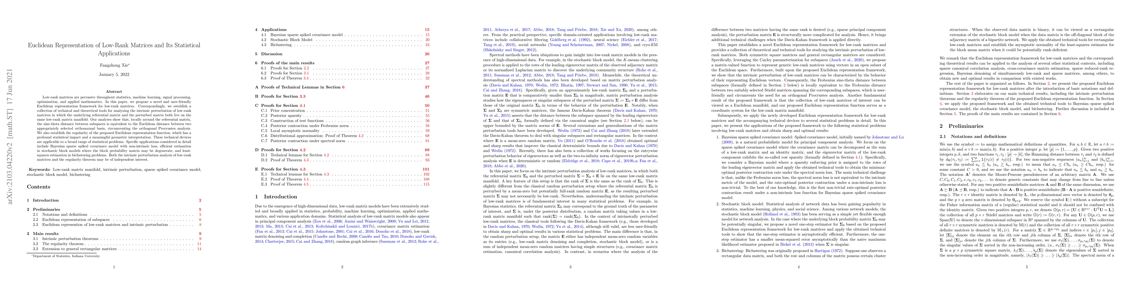 This paper introduces a novel Euclidean representation framework for low-rank matrices, providing theoretical tools for analyzing their intrinsic perturbations. It demonstrates the equivalence of the sine-theta distance to Euclidean distance for orthonormal bases, offering a statistical and geometric interpretation applicable to various statistical problems.