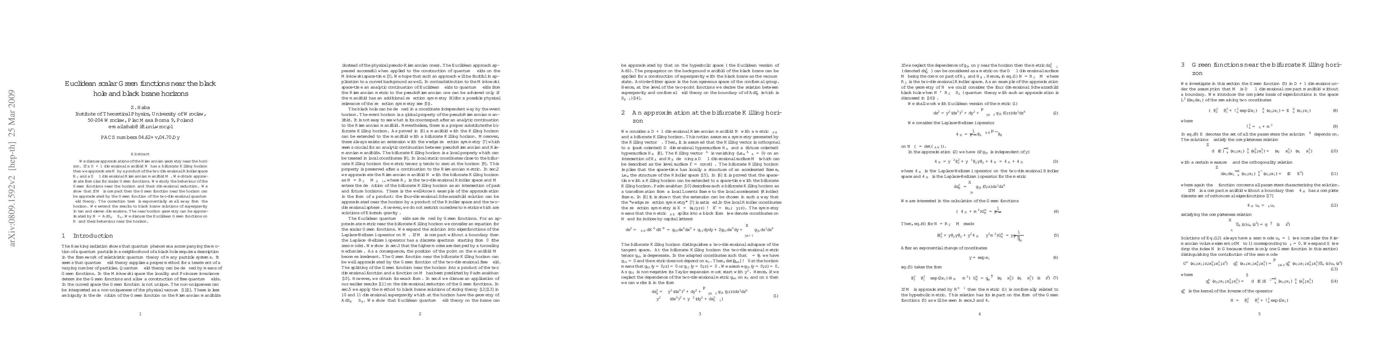 This paper explores approximations of Riemannian geometry near black hole and black brane horizons, deriving formulas for scalar Green functions. It shows that near the horizon, the Green function can be approximated by a two-dimensional quantum field theory, with corrections being exponentially small away from the horizon, and extends these findings to higher-dimensional black brane solutions.