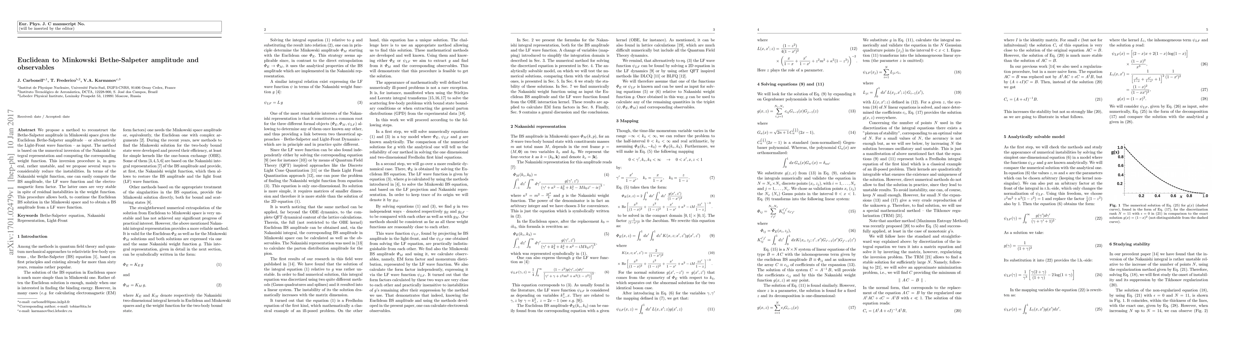 This paper proposes a method to reconstruct the Minkowski Bethe-Salpeter amplitude from the Euclidean version or the Light-Front wave function, using the inversion of the Nakanishi integral representation. Despite inherent instabilities, the method provides stable results for the BS amplitude, LF wave function, and electromagnetic form factor.