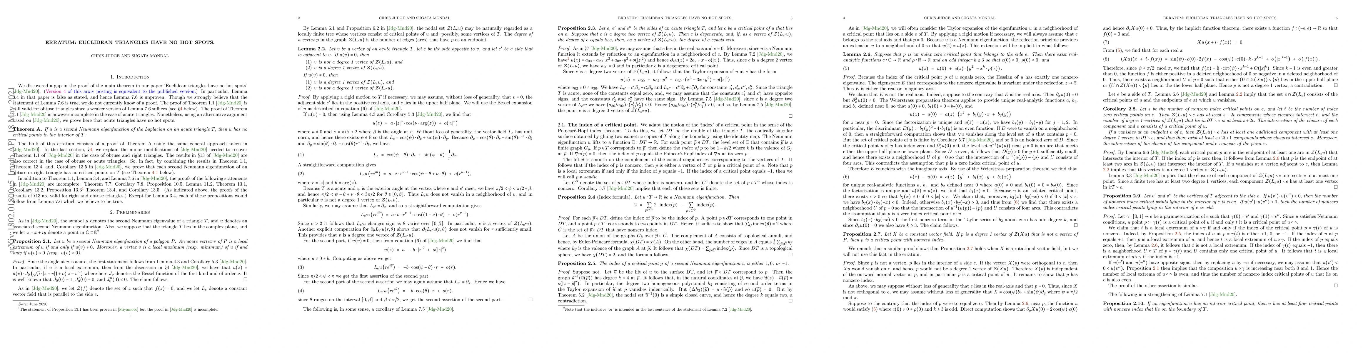 The research proves that second Neumann eigenfunctions of Euclidean triangles have no interior critical points, implying a lack of 'hot spots' in these geometric shapes.