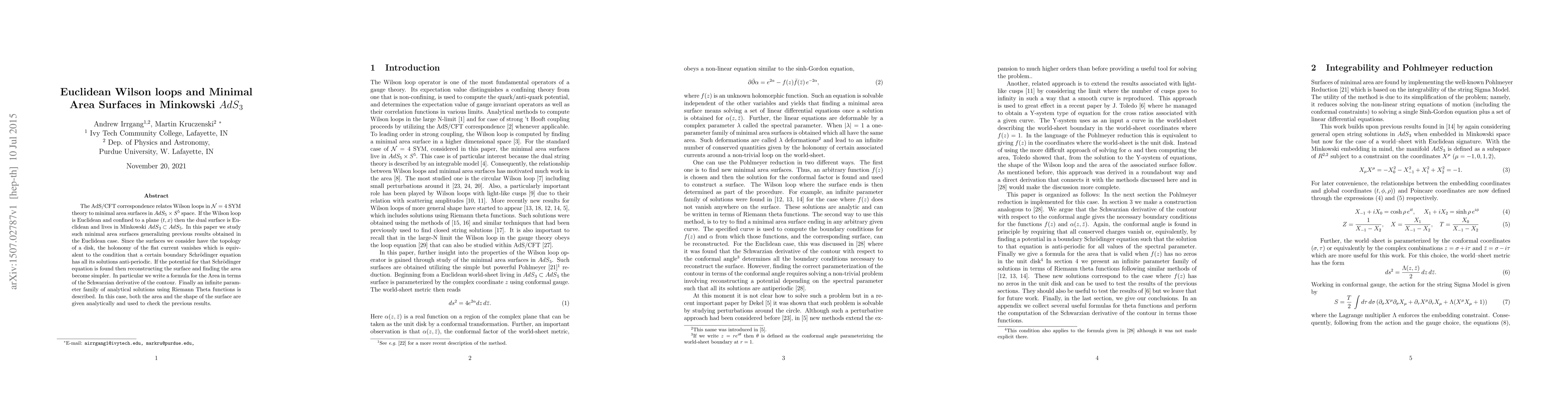 This paper explores the relationship between Euclidean Wilson loops in N=4 SYM theory and minimal area surfaces in Minkowski AdS3, extending previous Euclidean results. It provides a formula for the area of these surfaces in terms of the Schwarzian derivative of the contour and describes an infinite family of analytical solutions using Riemann Theta functions.