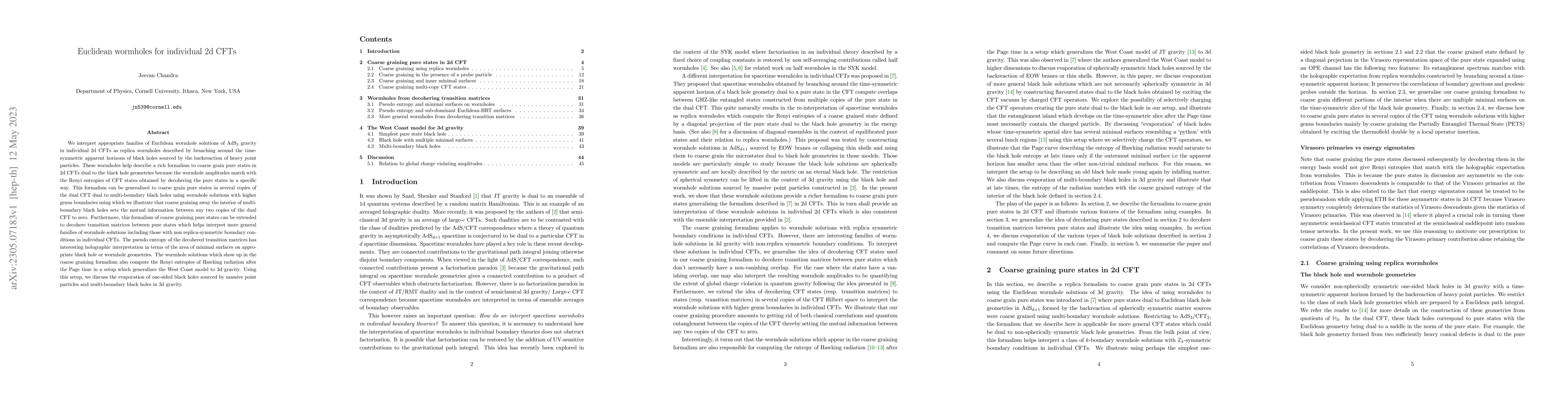 This paper interprets Euclidean wormhole solutions in AdS$_3$ gravity as replica wormholes in 2d CFTs, using them to coarse grain pure states and compute Renyi entropies. The formalism extends to multi-boundary black holes, setting mutual information to zero and providing a holographic interpretation of pseudo entropy.