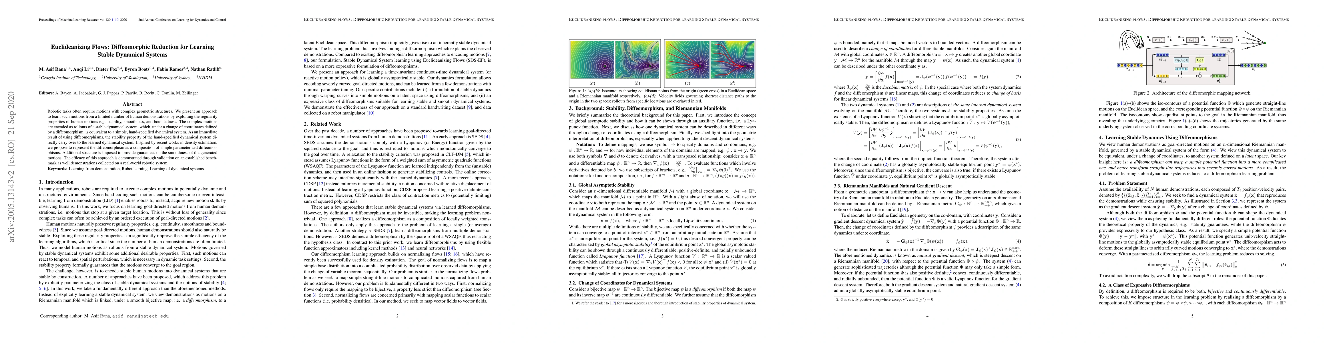 This paper proposes a method to learn complex, stable dynamical systems from limited human demonstrations by encoding motions as rollouts of a stable system under a diffeomorphic transformation. The approach ensures stability and smoothness through a composition of parameterized diffeomorphisms, validated on both a benchmark and a real-world robotic system.