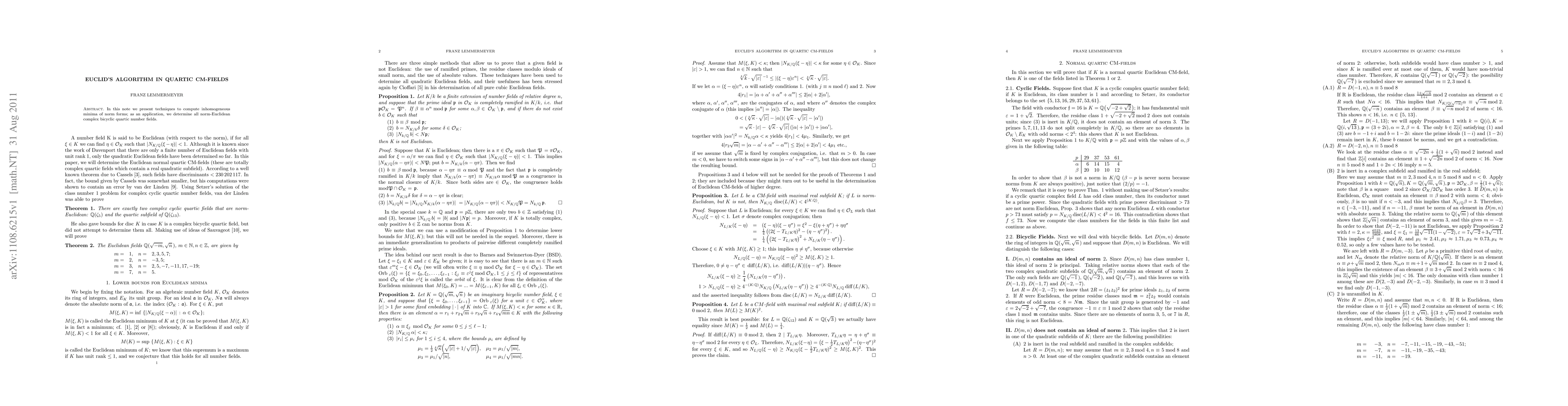 Summary: This paper explores the application of Euclid's algorithm to compute inhomogeneous minima of norm forms in quartic CM-fields. The study concludes by identifying all norm-Euclidean complex bicyclic quartic number fields using these techniques.
