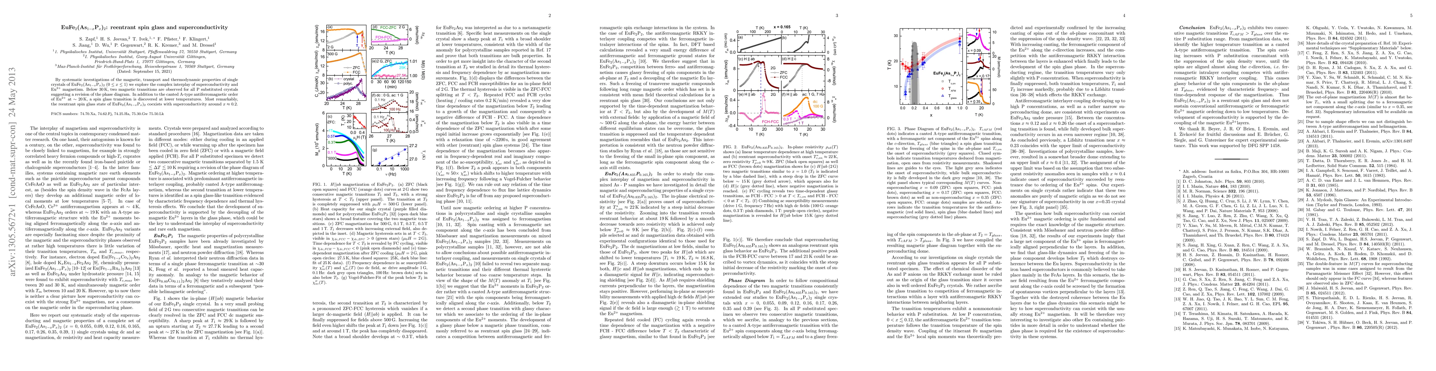 By systematic investigations of the magnetic, transport and thermodynamic properties of single crystals of EuFe2(As1-xPx)2 we explore the complex interplay of superconductivity and Eu2+ magnetism. Below 30K, two magnetic transitions are observed for all P substituted crystals suggesting a revision of the phase diagram. In addition to the canted A-type antiferromagnetic order of Eu2+ at approximately 20K, a spin glass transition is discovered at lower temperatures. Most remarkably, the reentrant spin glass state of EuFe2(As1-xPx)2 coexists with superconductivity around x = 0.2.