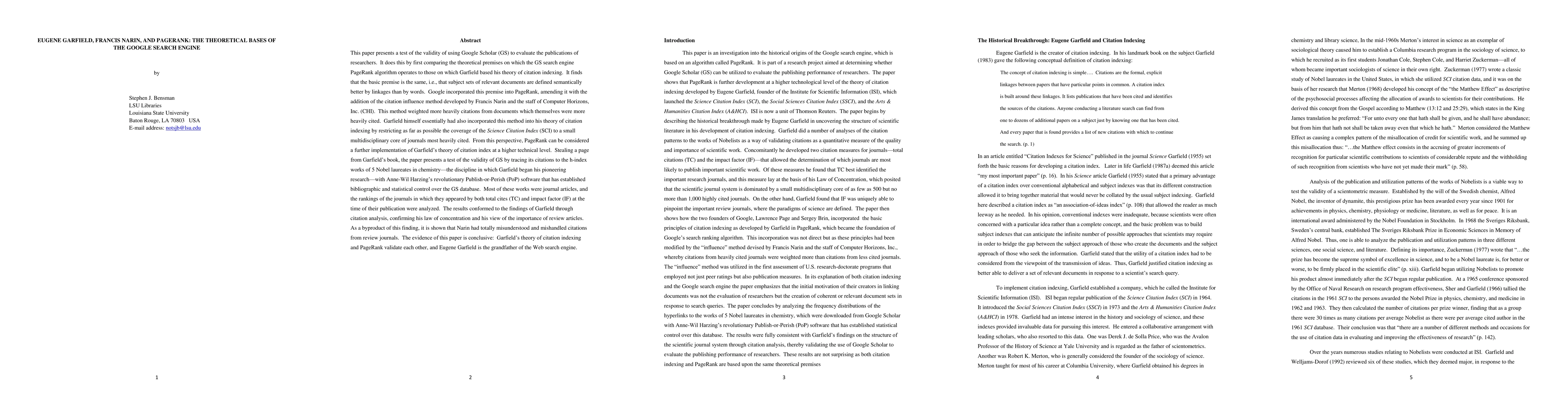 This paper presents a test of the validity of using Google Scholar to evaluate the publications of researchers by comparing the premises on which its search engine, PageRank, is based, to those of Garfield's theory of citation indexing. It finds that the premises are identical and that PageRank and Garfield's theory of citation indexing validate each other.
