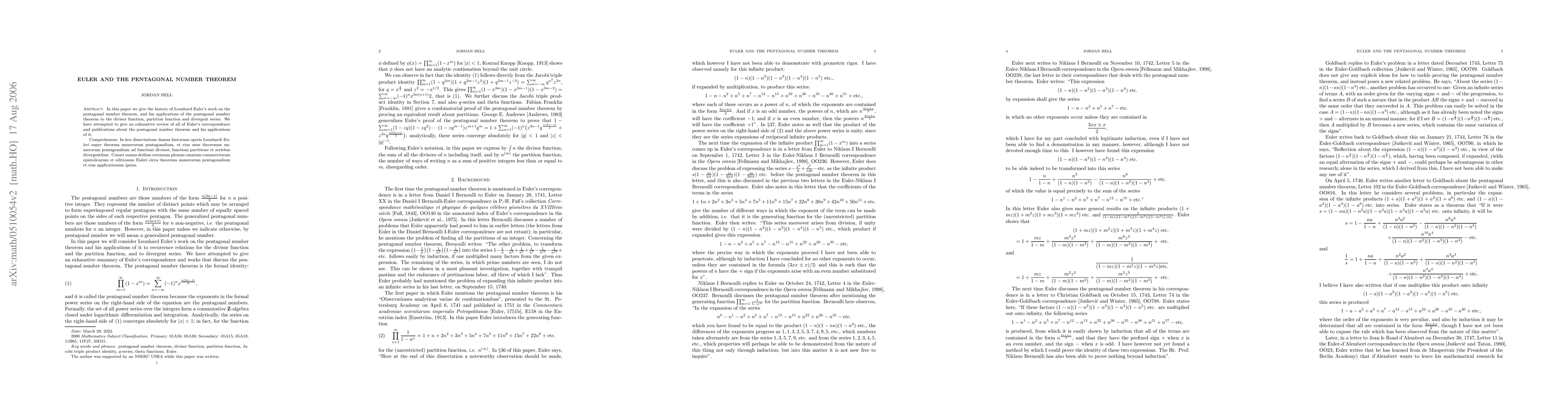 The paper provides an exhaustive summary of Euler's work on the pentagonal number theorem.