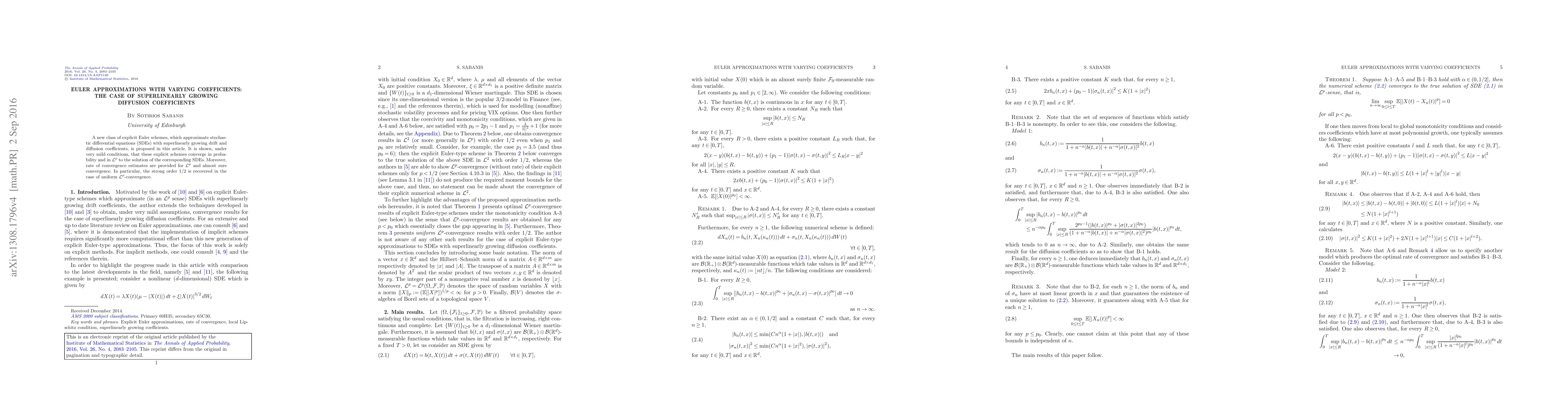 A new class of explicit Euler schemes is proposed for approximating stochastic differential equations with superlinearly growing drift and diffusion coefficients. The schemes converge in probability and in L^p to the solution of the corresponding SDEs under mild conditions.