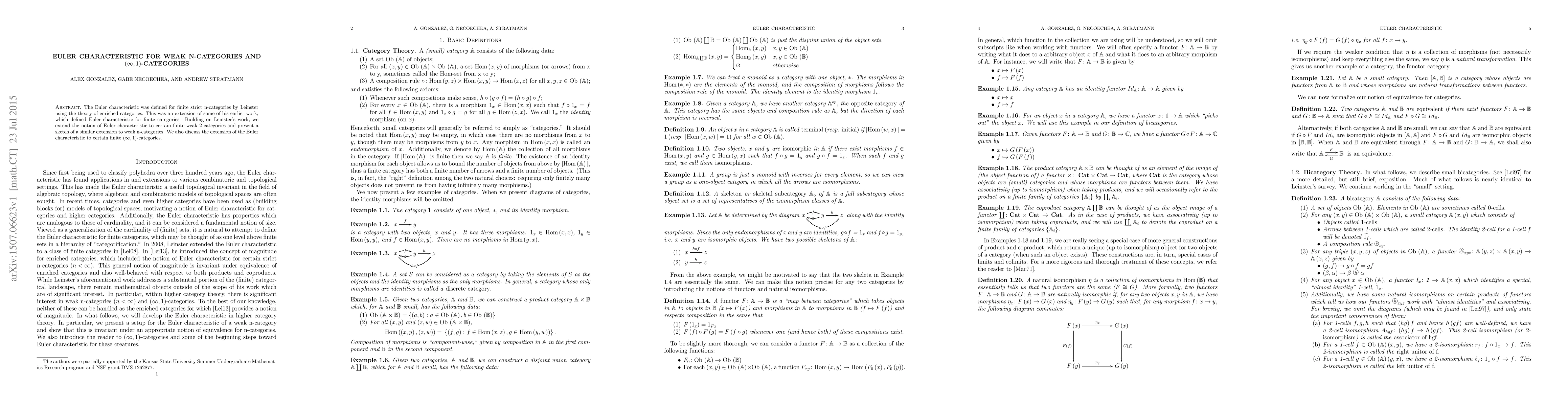 This paper extends Leinster's definition of Euler characteristic from finite strict n-categories to finite weak 2-categories and outlines a potential extension to weak n-categories, as well as discussing its applicability to finite $(\infty,1)$-categories. The focus is on the theoretical underpinnings and initial steps in this mathematical extension.
