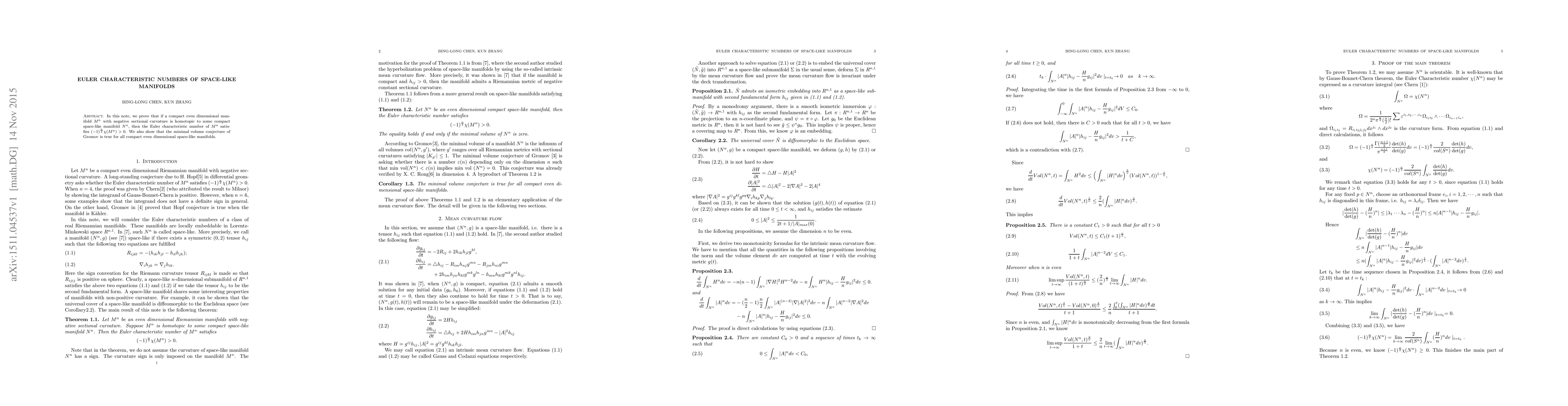 In this note, we prove that if a compact even dimensional manifold $M^{n}$ with negative sectional curvature is homotopic to some compact space-like manifold $N^{n}$, then the Euler characteristic number of $M^{n}$ satisfies $(-1)^{\frac{n}{2}}\chi(M^{n})>0$. We also show that the minimal volume conjecture of Gromov is true for all compact even dimensional space-like manifolds.