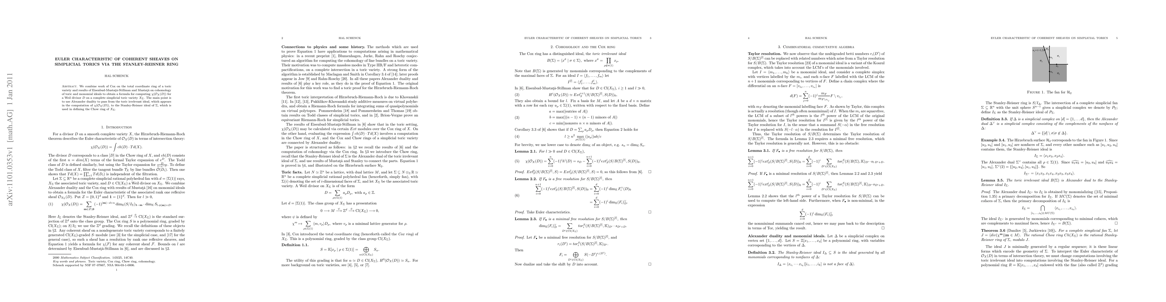 We combine work of Cox on the total coordinate ring of a toric variety and results of Eisenbud-Mustata-Stillman and Mustata on cohomology of toric and monomial ideals to obtain a formula for computing the Euler characteristic of a Weil divisor D on a complete simplicial toric variety in terms of graded pieces of the Cox ring and Stanley-Reisner ring. The main point is to use Alexander duality to pass from the toric irrelevant ideal, which appears in the computation of the Euler characteristic of D, to the Stanley-Reisner ideal of the fan, which is used in defining the Chow ring. The formula also follows from work of Maclagan-Smith.