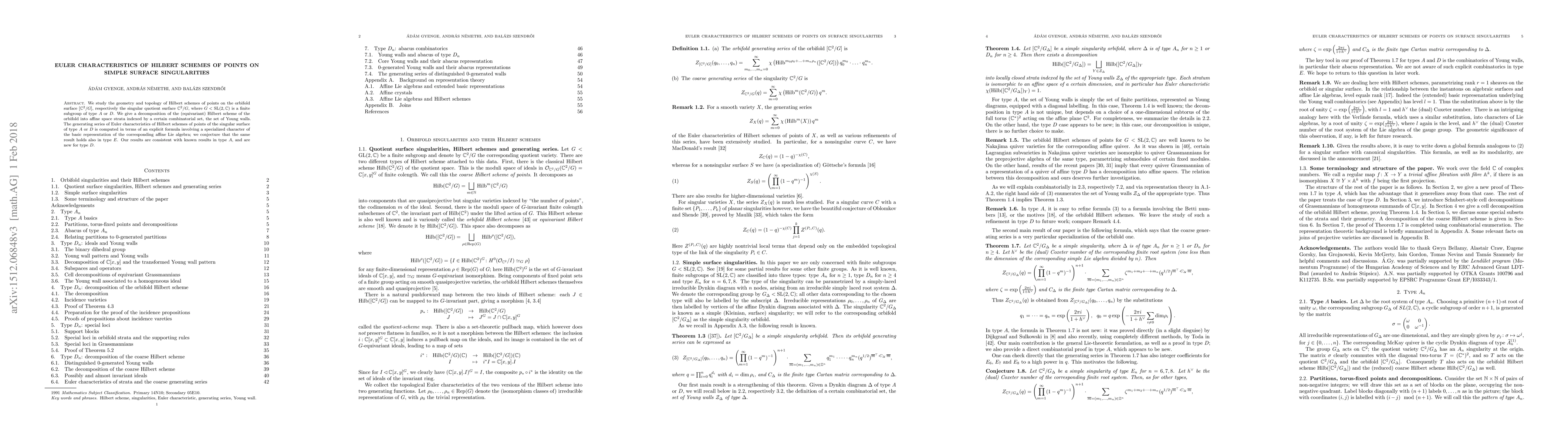 This paper studies the geometry and topology of Hilbert schemes on singular orbifold surfaces, providing a decomposition into affine space strata. It computes the Euler characteristics of these schemes using a specialized character from affine Lie algebra, with results consistent for type A and new for type D.