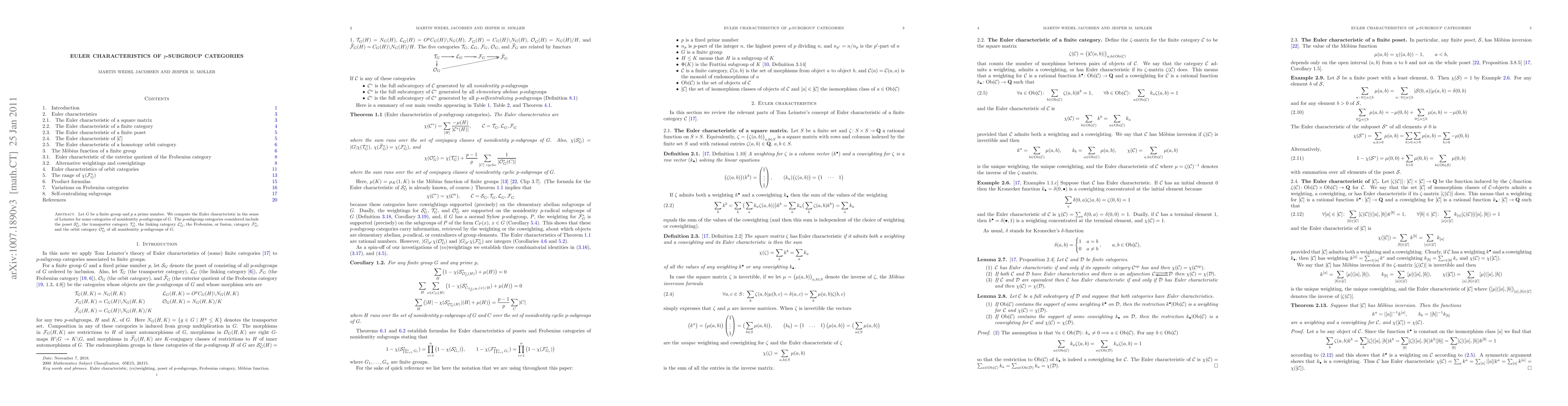 Summary: This paper calculates the Euler characteristics for categories of p-subgroups within finite groups, providing a deeper understanding of the subgroup structures and their combinatorial properties. The results offer valuable insights into the algebraic topology of these groups.
