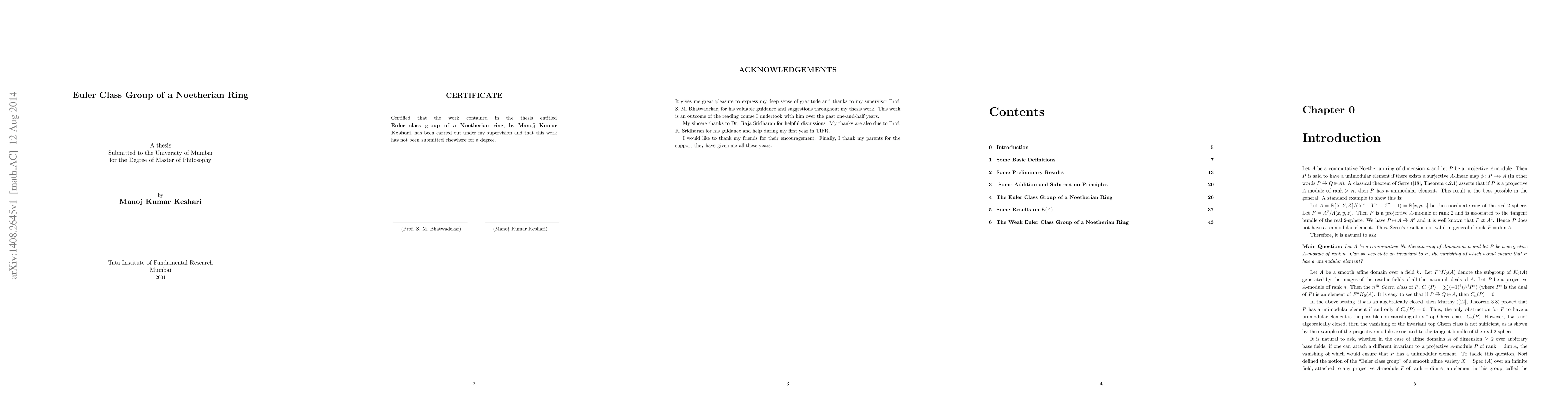 We will study the Euler class group of a commutative Noetherian ring $A$ of dimension $d$, developed by S.M. Bhatwadekar and Raja Sridharan. This is my M.Phil thesis from 2001.