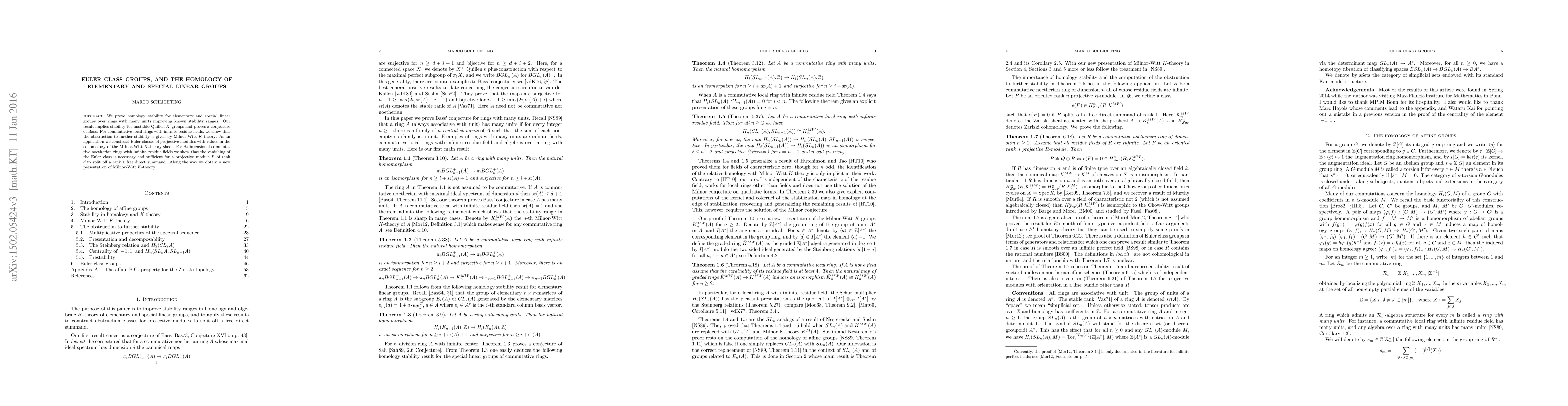 This paper proves homology stability for elementary and special linear groups over rings with many units, improving known stability ranges. It also establishes the obstruction to further stability for commutative local rings with infinite residue fields via Milnor-Witt K-theory and constructs Euler classes linked to the cohomology of this theory.