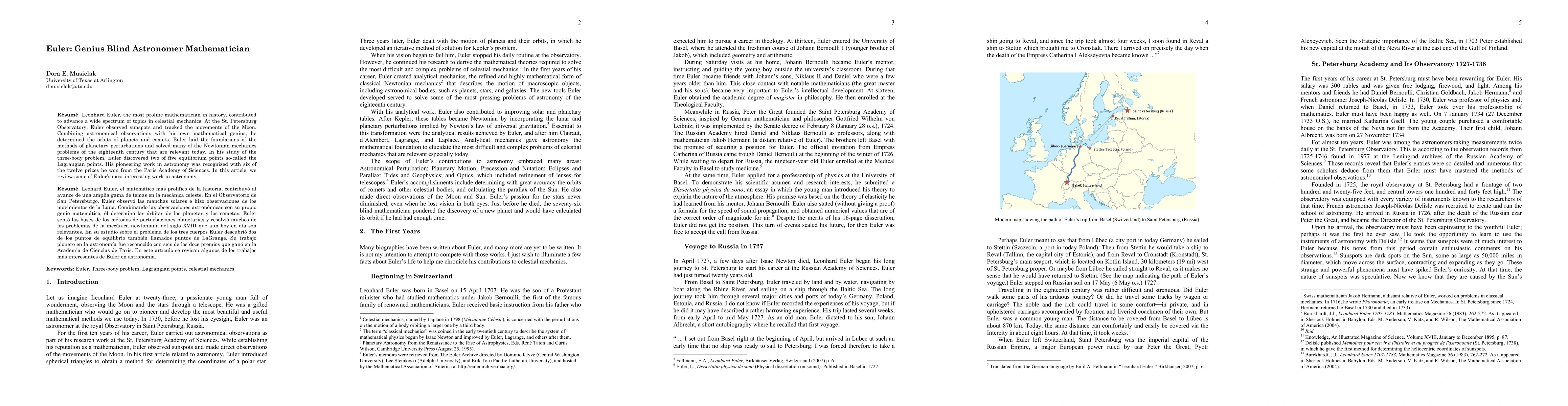 Leonhard Euler made groundbreaking contributions to astronomy through his mathematical genius, including determining planet orbits, discovering Lagrangian points, and solving 18th-century Newtonian mechanics problems.