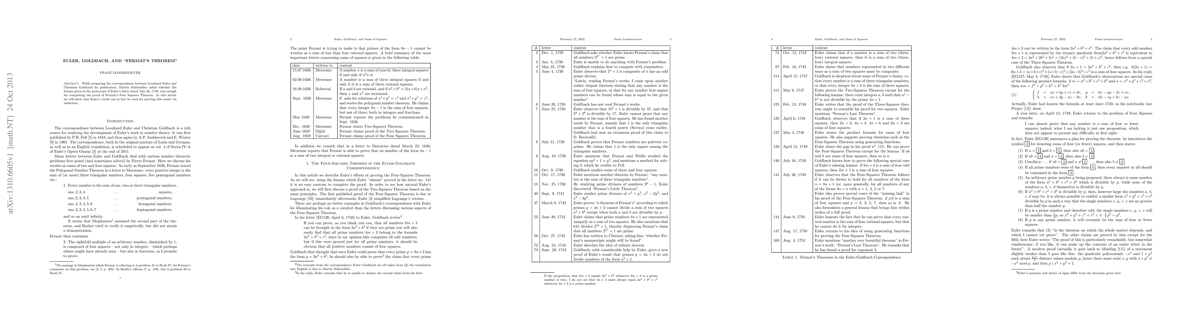 While preparing the correspondence between Leonhard Euler and Christian Goldbach for publication, Martin Mattmueller asked whether the lemma given in the postscript of Euler's letter dated July 26, 1749, was enough for completing the proof of Fermat's Four Squares Theorem. In this article we will show that Euler's result can in fact be used for proving this result via induction.