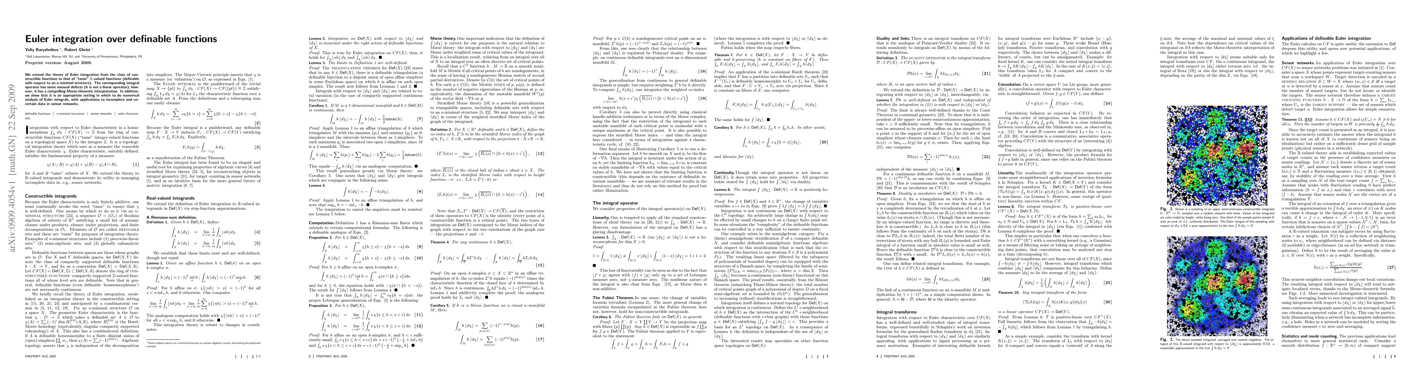 This paper extends Euler integration to "tame" real-valued functions definable within an o-minimal structure, despite the non-linearity of the integral operator, it offers a Morse-theoretic interpretation and proves its utility in numerical analysis for incomplete sensor data.