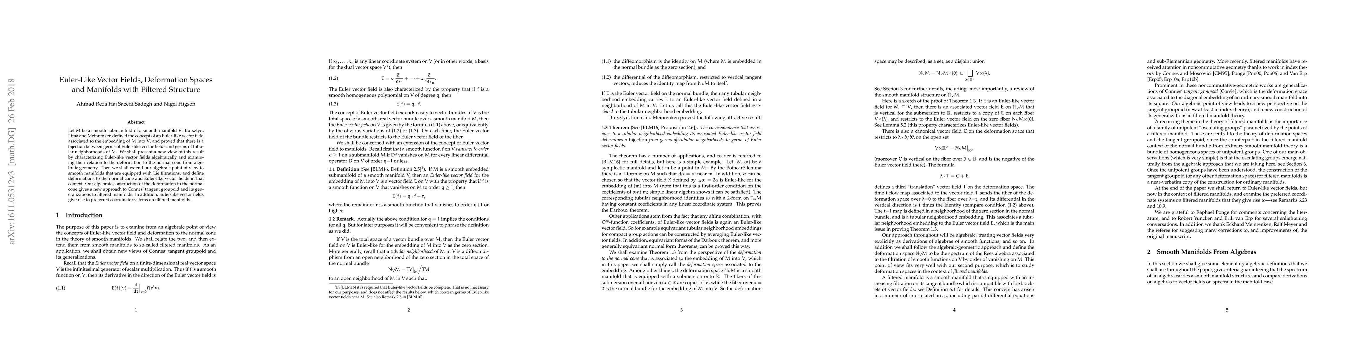 This paper explores the bijection between tubular neighborhoods of smooth submanifolds and "Euler-like" vector fields via deformation to the normal cone, extending these concepts to manifolds with Lie filtrations. It defines a suitable deformation to the normal cone for filtered manifolds and connects it to Euler-like vector fields.