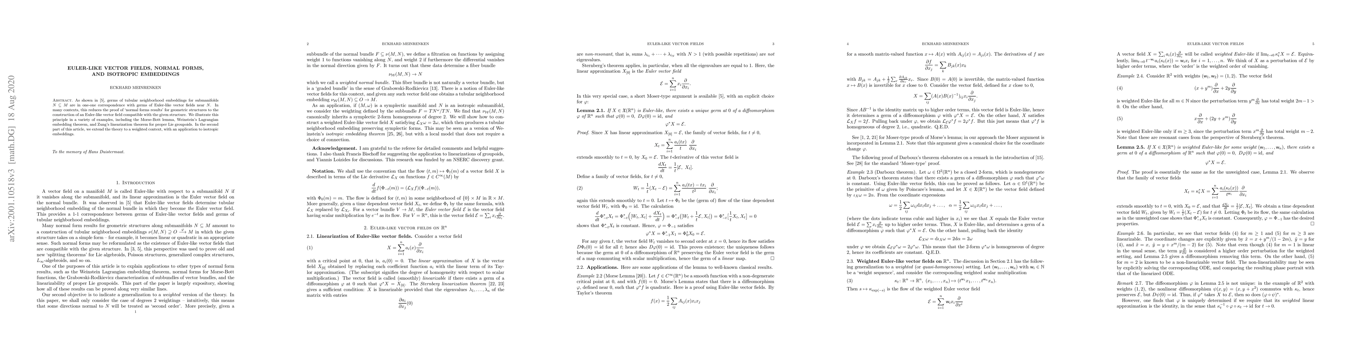 This paper explores the correspondence between tubular neighborhood embeddings of submanifolds and Euler-like vector fields, demonstrating how this principle simplifies proofs of normal form results. It extends the theory to a weighted context and applies it to isotropic embeddings.