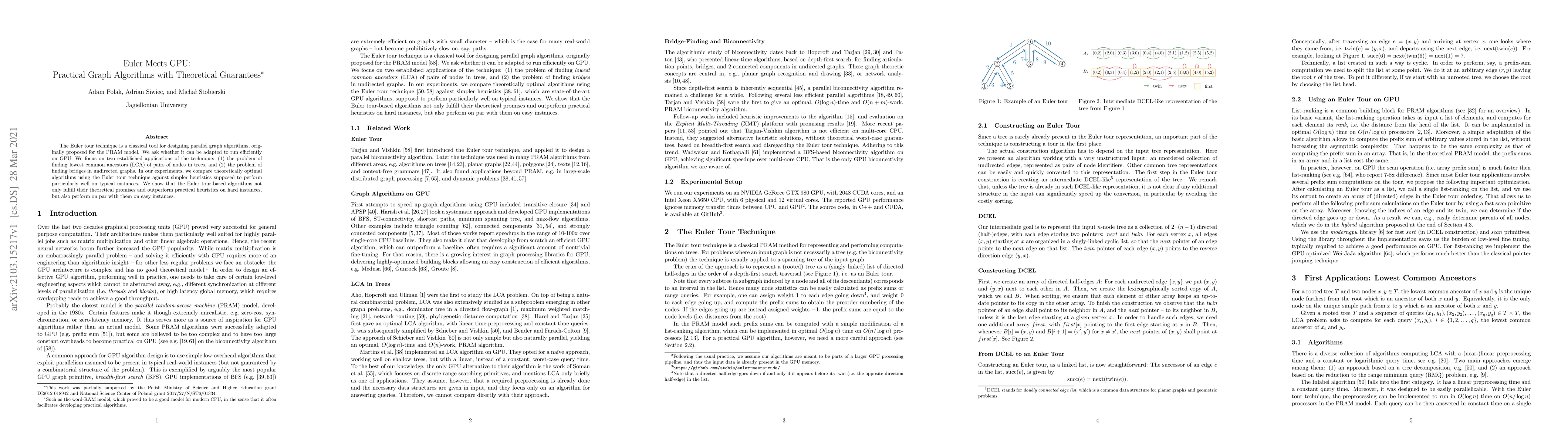 Researchers adapted Euler tour technique to run efficiently on GPU, outperforming simpler heuristics for graph problems like LCA and bridge finding.
