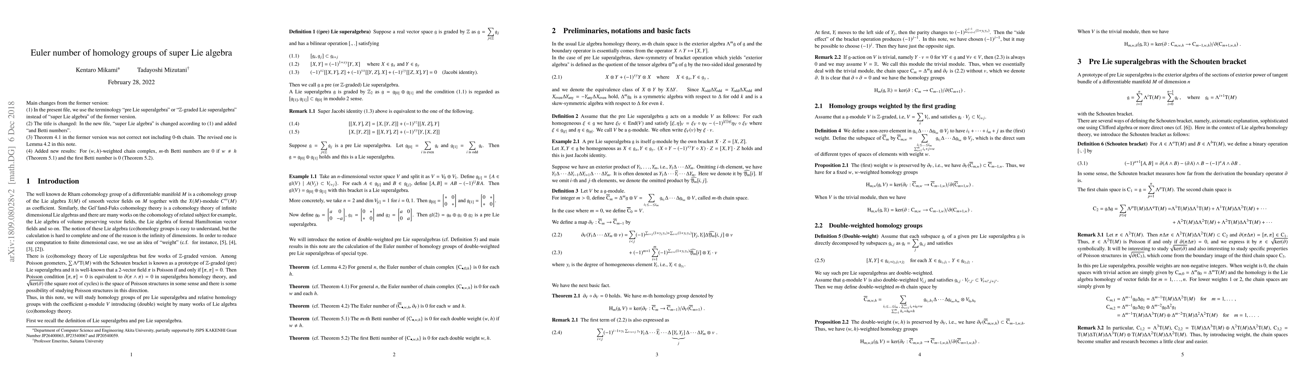 First we recall homology groups of prer Lie superalgebras. Then introducing double weighted chain spaces, we deal with pre Lie superalgebra of multi-vector fields with polynomial coefficients on n-dimensional number space. The bracket is Schouten bracket. We have several results about Euler number and Betti numbers of those homology groups of special pre Lie superalgebra.