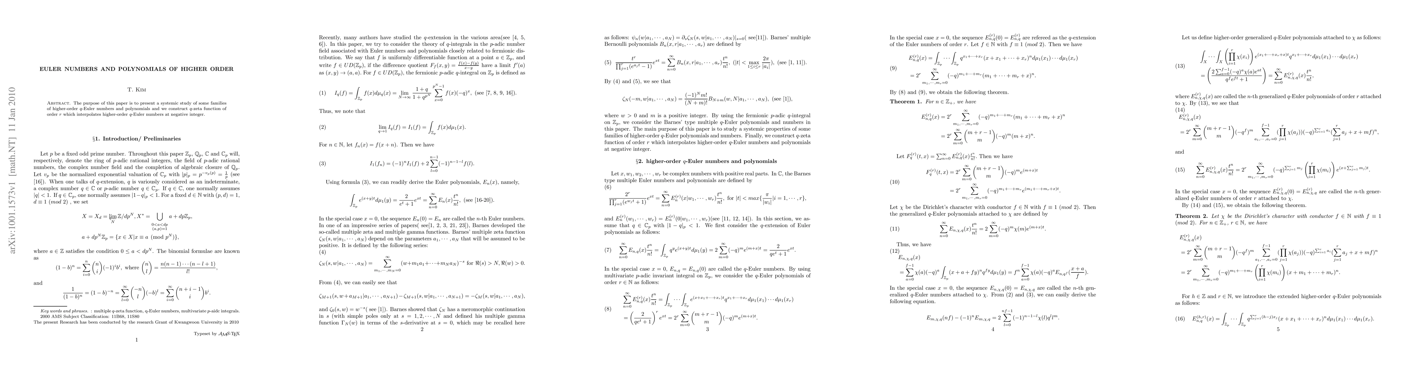 This paper explores higher-order Euler numbers and polynomials, introducing multiple zeta functions that interpolate these higher-order Euler entities at negative integers. It aims to extend the classical Euler numbers and polynomials into a more generalized framework.