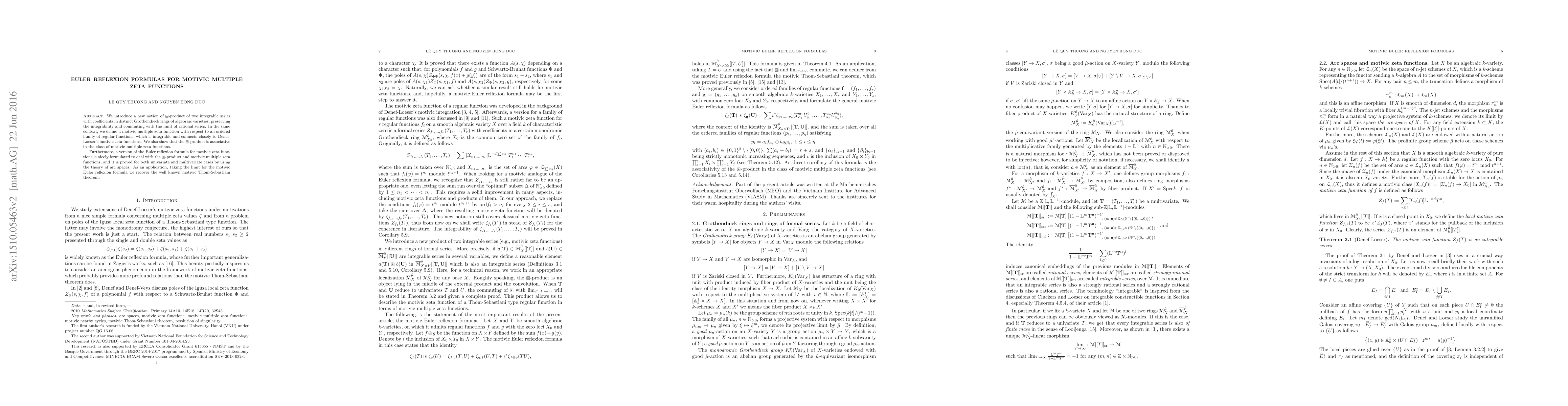 This paper introduces a $\boxast$-product for integrable series in distinct Grothendieck rings, defining a motivic multiple zeta function that connects to Denef-Loeser's motivic zeta functions. It proves an Euler reflexion formula for these functions using arc space theory and recovers the motivic Thom-Sebastiani theorem as a special case.