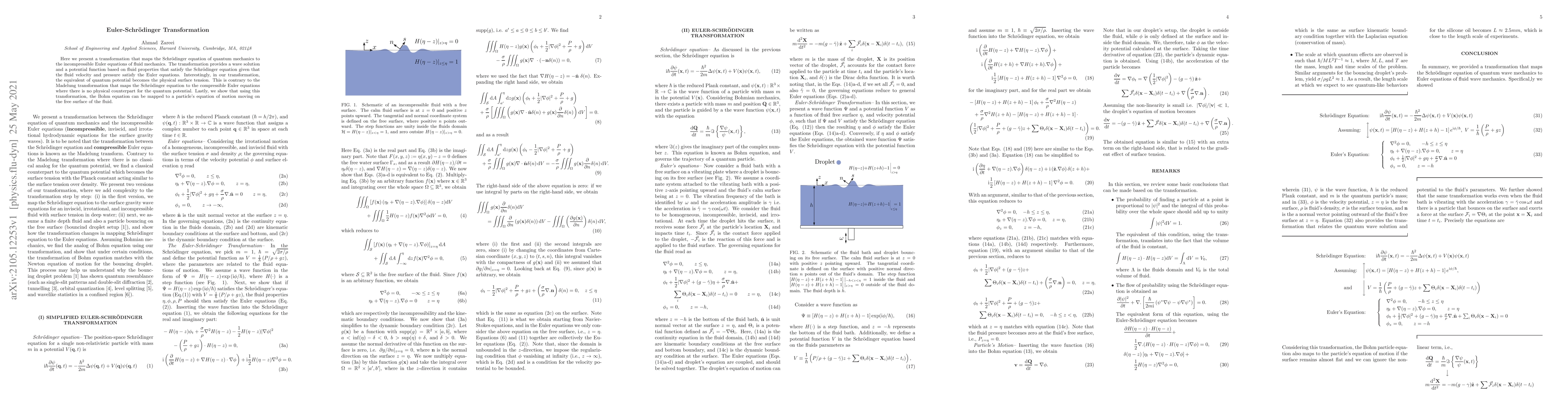 Researchers have successfully transformed the Schrodinger equation of quantum mechanics into the incompressible Euler equations of fluid mechanics, revealing a surprising connection between wave solutions and surface tension.