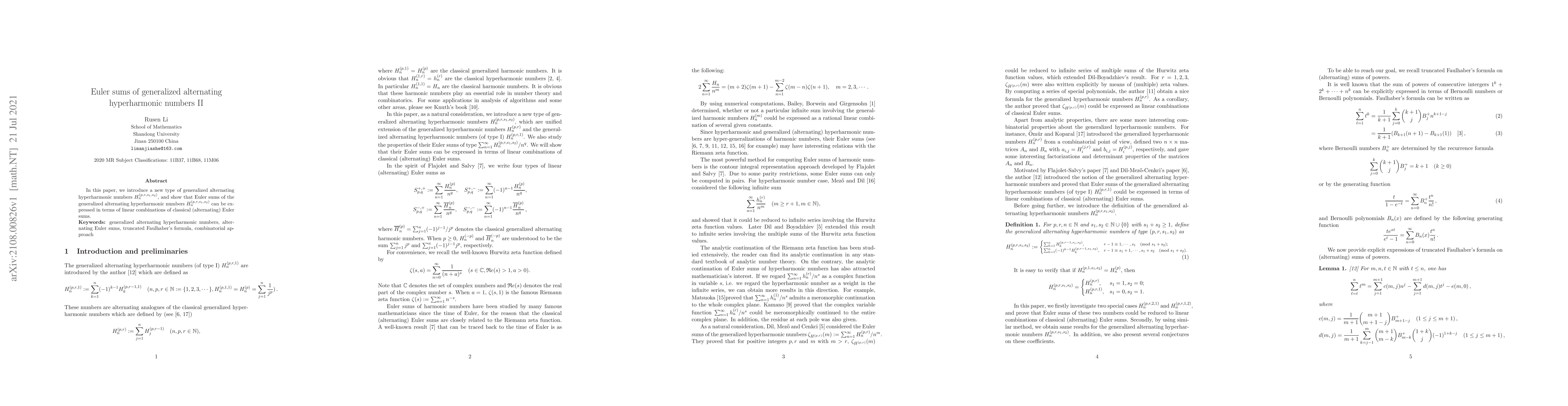 In this paper, we introduce a new type of generalized alternating hyperharmonic numbers $H_n^{(p,r,s_{1},s_{2})}$, and show that Euler sums of the generalized alternating hyperharmonic numbers $H_n^{(p,r,s_{1},s_{2})}$ can be expressed in terms of linear combinations of classical (alternating) Euler sums.