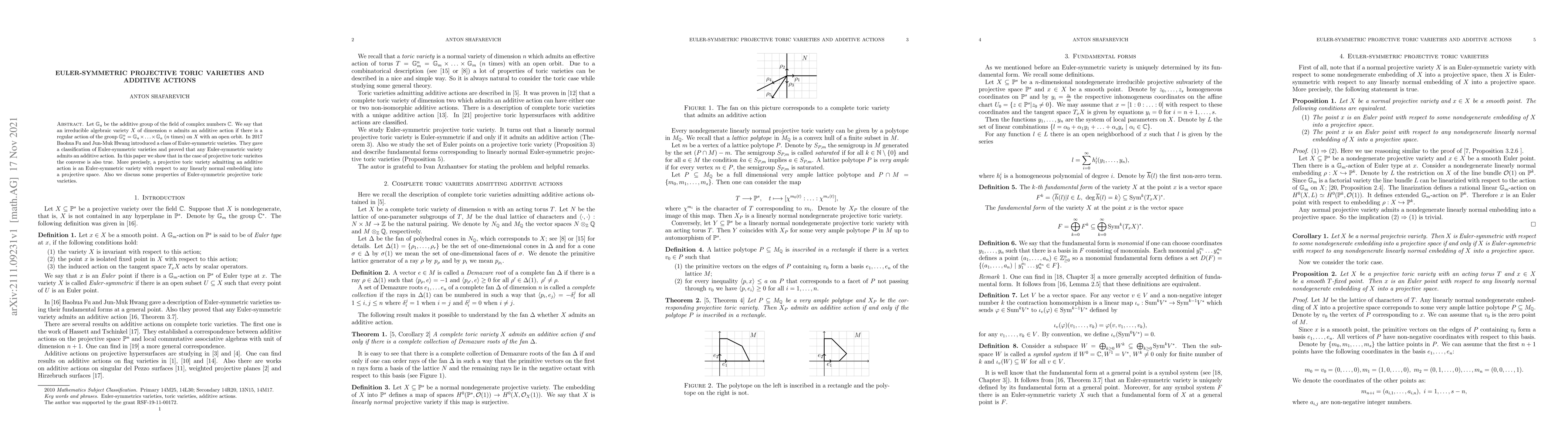 This paper explores Euler-symmetric projective toric varieties and proves that any such variety admitting an additive action is itself Euler-symmetric with respect to any linearly normal embedding. It also delves into properties of these Euler-symmetric projective toric varieties.