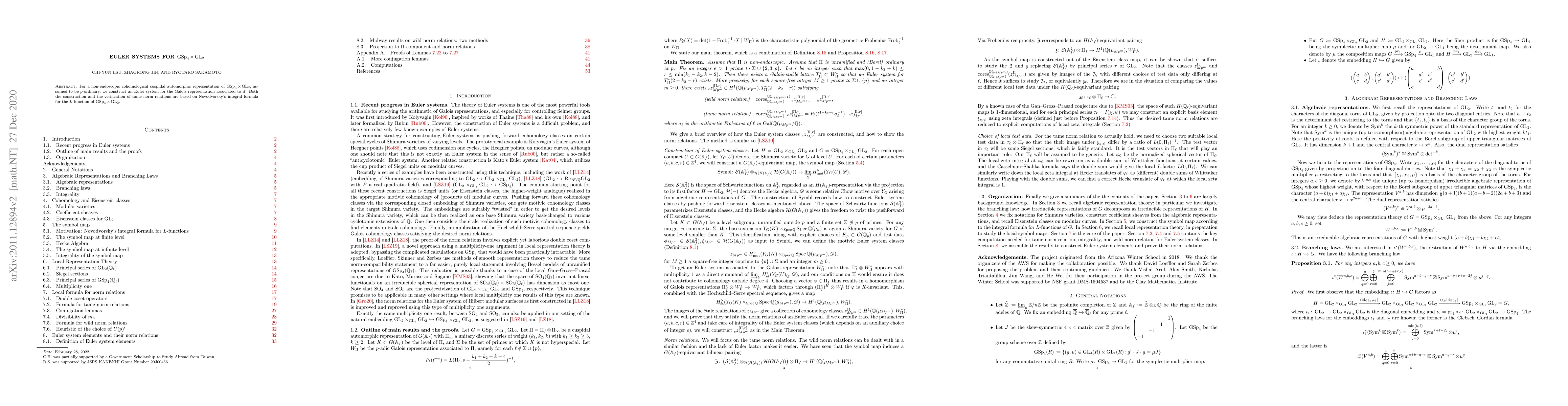 This paper constructs an Euler system for a $p$-ordinary, non-endoscopic cohomological cuspidal automorphic representation of $\mathrm{GSp}_4 \times \mathrm{GL}_2$, using Novodvorsky's integral formula to verify tame norm relations associated with the Galois representation.