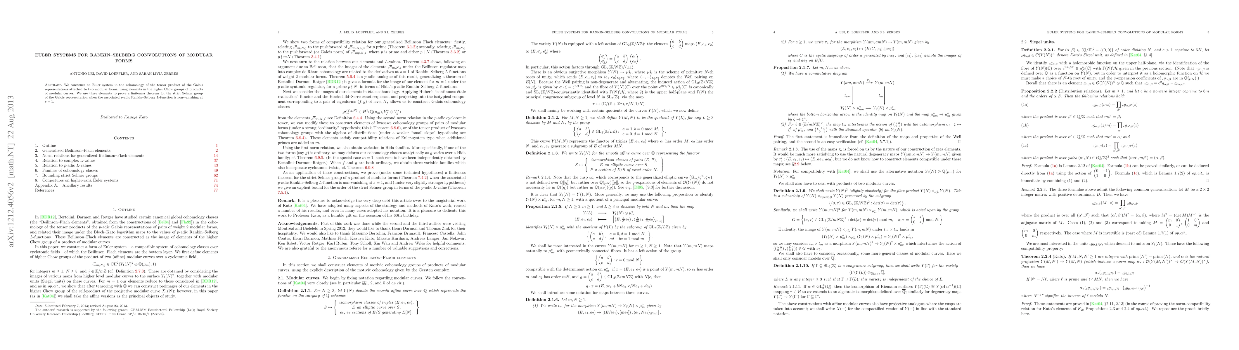 We construct an Euler system in the cohomology of the tensor product of the Galois representations attached to two modular forms, using elements in the higher Chow groups of products of modular curves. We use this Euler system to prove a finiteness theorem for the strict Selmer group of the Galois representation when the associated p-adic Rankin--Selberg L-function is non-vanishing at s = 1.