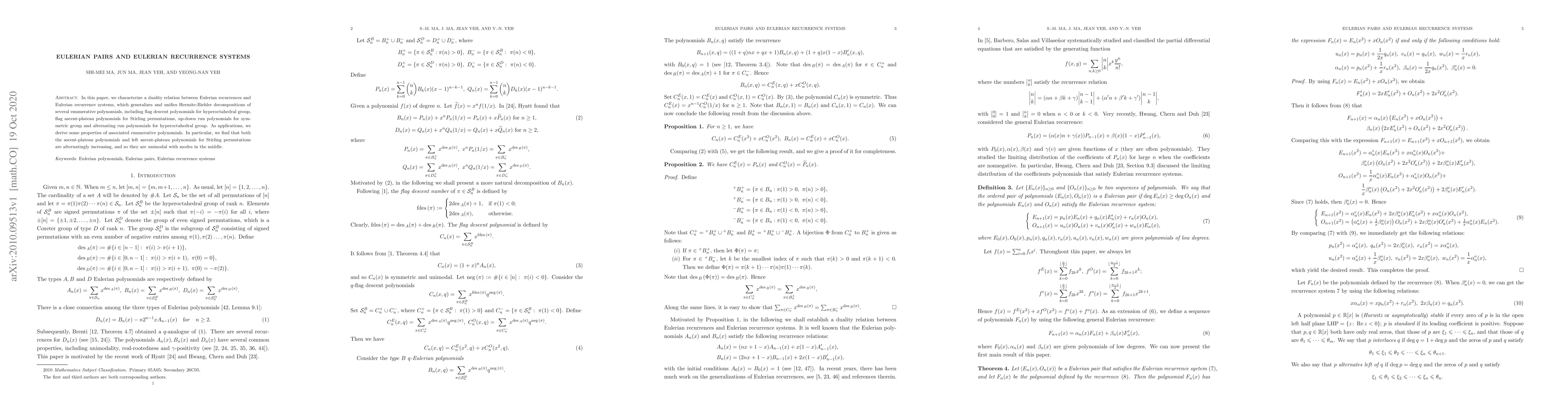 In this paper, we characterize a duality relation between Eulerian recurrences and Eulerian recurrence systems, which generalizes and unifies Hermite-Biehler decompositions of several enumerative polynomials, including flag descent polynomials for hyperoctahedral group, flag ascent-plateau polynomials for Stirling permutations, up-down run polynomials for symmetric group and alternating run polynomials for hyperoctahedral group. As applications, we derive some properties of associated enumerative polynomials. In particular, we find that both the ascent-plateau polynomials and left ascent-plateau polynomials for Stirling permutations are alternatingly increasing, and so they are unimodal with modes in the middle.