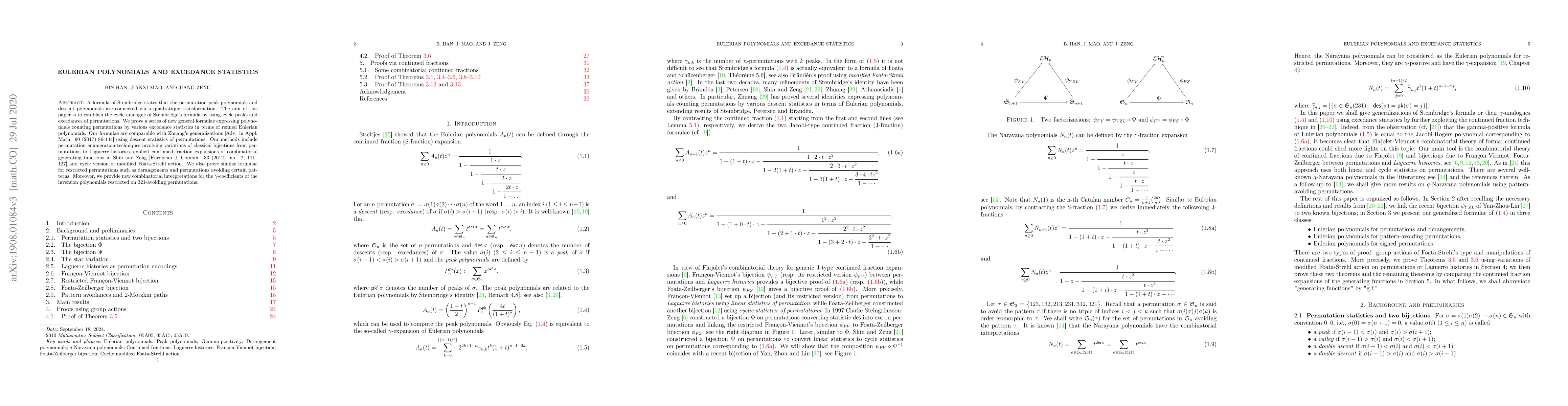 This paper establishes cycle analogues of Stembridge's formula using cycle peaks and excedances, deriving new general expressions for Eulerian polynomials in terms of permutation excedance statistics. It also extends these results to restricted permutations like derangements and pattern-avoiding permutations, providing new combinatorial interpretations for inversion polynomials.