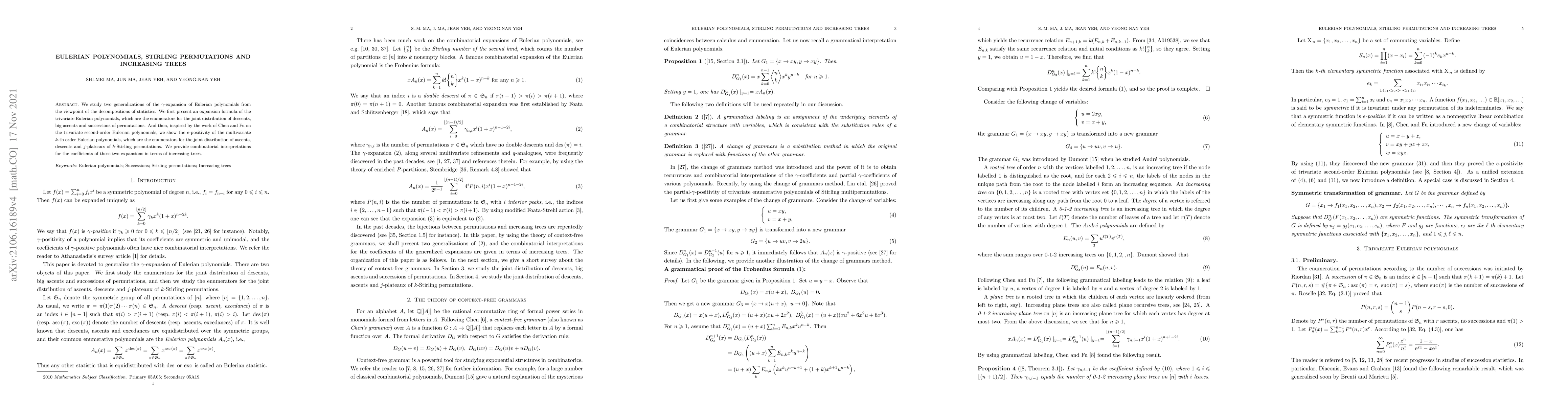 This paper generalizes Eulerian polynomials through trivariate expansions, demonstrating their role in the joint distribution of descents, big ascents, and successions in permutations. It further establishes the e-positivity of multivariate k-th order Eulerian polynomials for k-Stirling permutations, and interprets their coefficients via combinatorial structures known as increasing trees.
