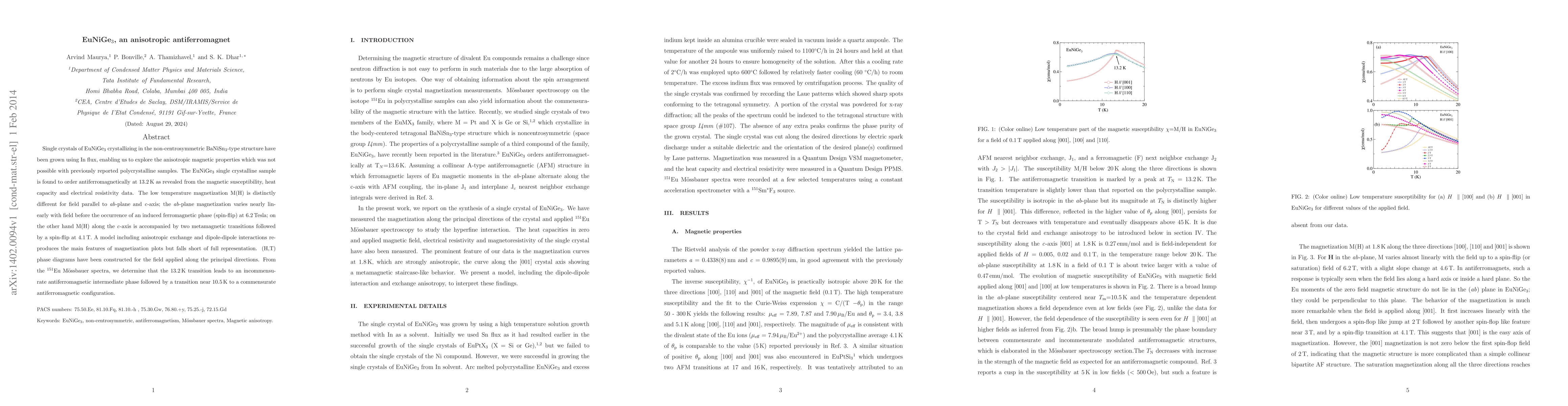 Single crystals of EuNiGe$_3$ crystallizing in the non-centrosymmetric BaNiSn$_3$-type structure have been grown using In flux, enabling us to explore the anisotropic magnetic properties which was not possible with previously reported polycrystalline samples. The EuNiGe$_3$ single crystalline sample is found to order antiferromagnetically at 13.2 K as revealed from the magnetic susceptibility, heat capacity and electrical resistivity data. The low temperature magnetization M(H) is distinctly different for field parallel to ${ab}$-plane and $c$-axis; the ${ab}$-plane magnetization varies nearly linearly with field before the occurrence of an induced ferromagnetic phase (spin-flip) at 6.2 Tesla; on the other hand M(H) along the $c$-axis is accompanied by two metamagnetic transitions followed by a spin-flip at 4.1 T. A model including anisotropic exchange and dipole-dipole interactions reproduces the main features of magnetization plots but falls short of full representation. (H,T) phase diagrams have been constructed for the field applied along the principal directions. From the $^{151}$Eu M\"{o}ssbauer spectra, we determine that the 13.2 K transition leads to an incommensurate antiferromagnetic intermediate phase followed by a transition near 10.5 K to a commensurate antiferromagnetic configuration.