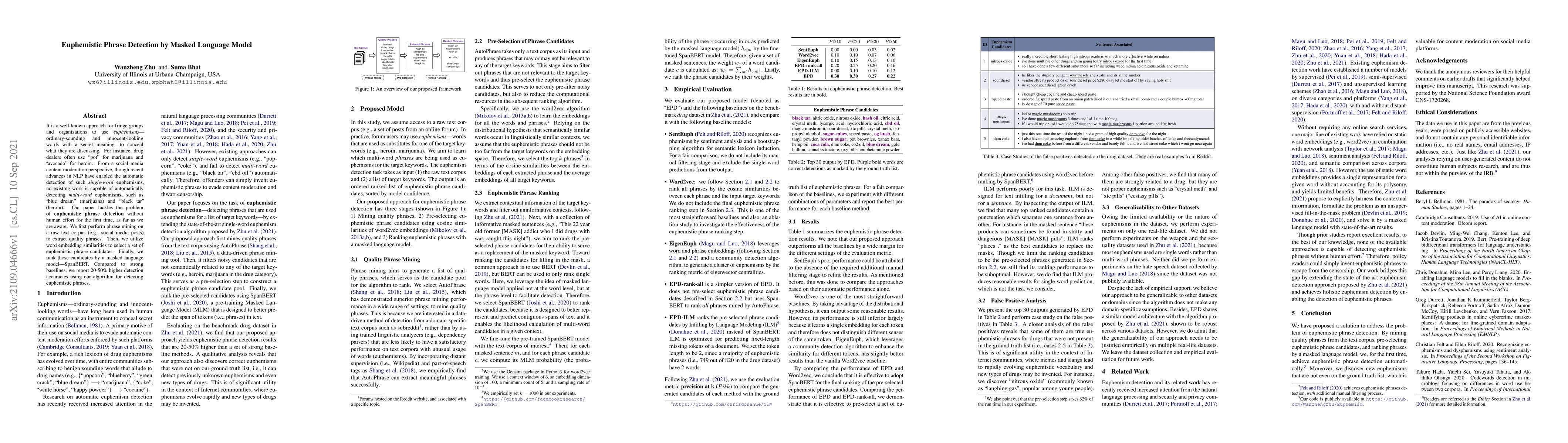 It is a well-known approach for fringe groups and organizations to use euphemisms -- ordinary-sounding and innocent-looking words with a secret meaning -- to conceal what they are discussing. For instance, drug dealers often use "pot" for marijuana and "avocado" for heroin. From a social media content moderation perspective, though recent advances in NLP have enabled the automatic detection of such single-word euphemisms, no existing work is capable of automatically detecting multi-word euphemisms, such as "blue dream" (marijuana) and "black tar" (heroin). Our paper tackles the problem of euphemistic phrase detection without human effort for the first time, as far as we are aware. We first perform phrase mining on a raw text corpus (e.g., social media posts) to extract quality phrases. Then, we utilize word embedding similarities to select a set of euphemistic phrase candidates. Finally, we rank those candidates by a masked language model -- SpanBERT. Compared to strong baselines, we report 20-50% higher detection accuracies using our algorithm for detecting euphemistic phrases.
