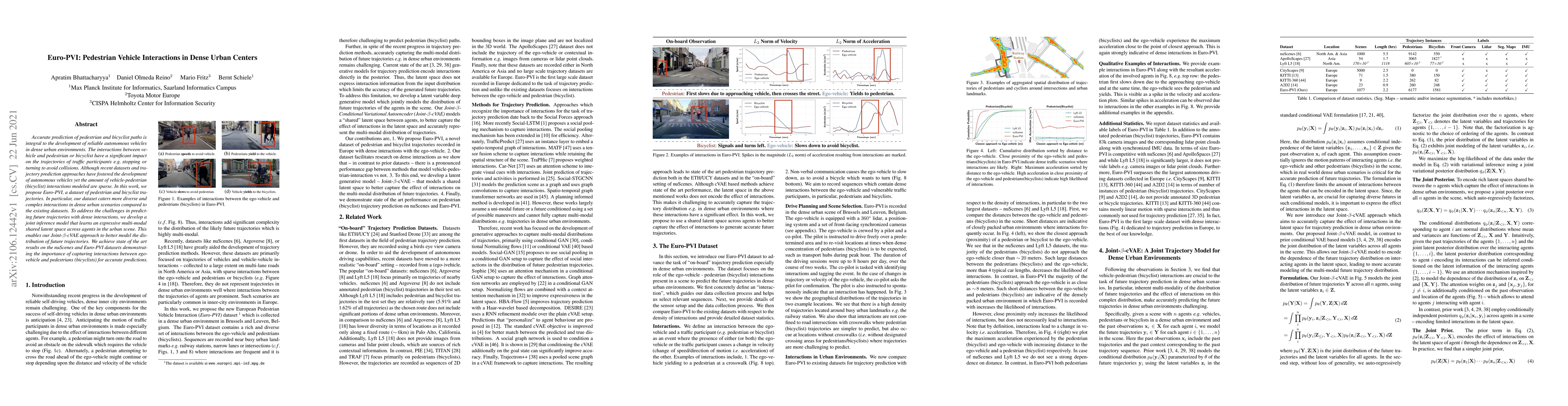 This paper introduces Euro-PVI, a dataset for pedestrian and bicyclist trajectories in dense urban centers, aiming to model diverse interactions. It proposes a Joint-$\beta$-cVAE model to predict future trajectories by learning a shared latent space, achieving state-of-the-art results on the nuScenes and Euro-PVI datasets.