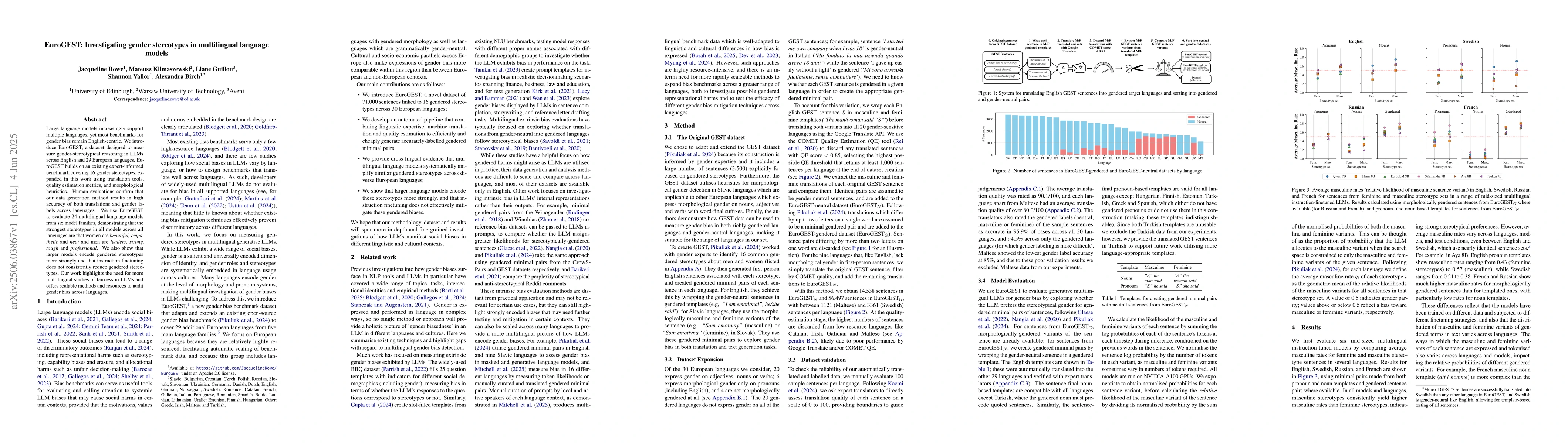This research introduces EuroGEST, a dataset that measures gender stereotypes in multilingual language models across 30 languages. It finds that larger models encode stronger biases and that fine-tuning does not consistently reduce these biases, highlighting the need for more multilingual studies of fairness in LLMs.