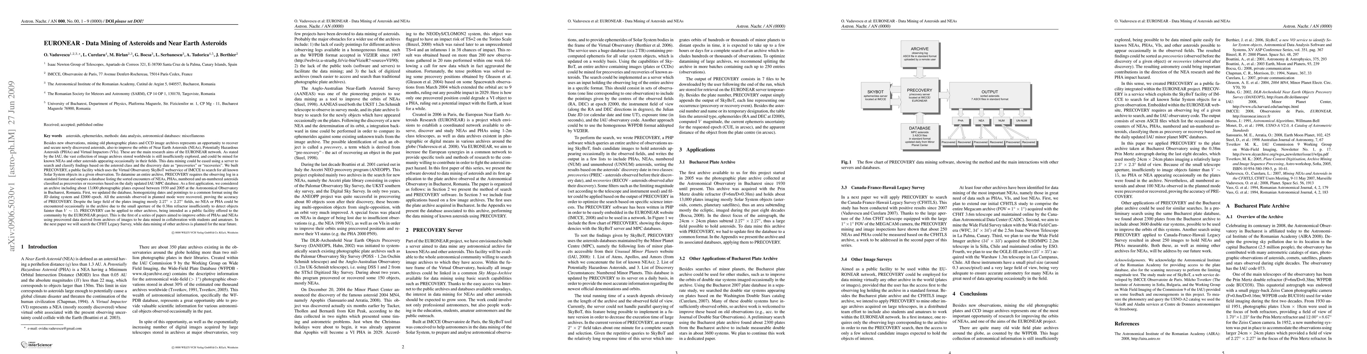 The EURONEAR project aims to enhance the orbits of Near Earth Asteroids (NEAs) and Potentially Hazardous Asteroids (PHAs) by mining old photographic plates and CCD image archives. PRECOVERY, a public tool developed for this purpose, utilizes the Virtual Observatory SkyBoT webservice to identify known Solar System objects in historical observations, classifying them as precoveries or recoveries.