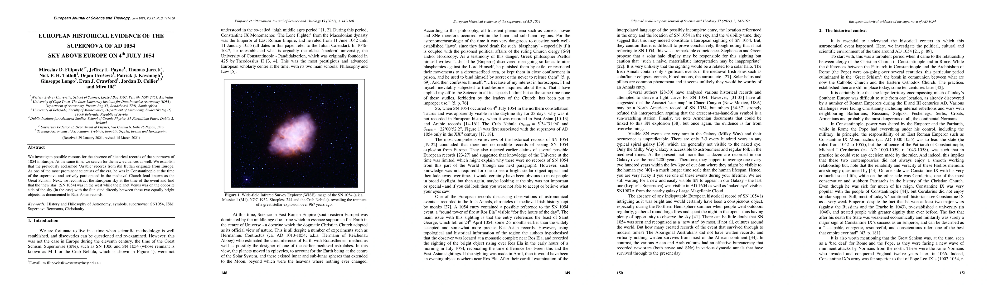 This paper reevaluates the historical records of the 1054 supernova, identifying European origins for previously attributed 'Arabic' accounts by scientist ibn Butlan in Constantinople. It reconstructs the European sky, revealing SN 1054 in the west, Venus in the east, and the Sun between them, explaining the lack of European records.