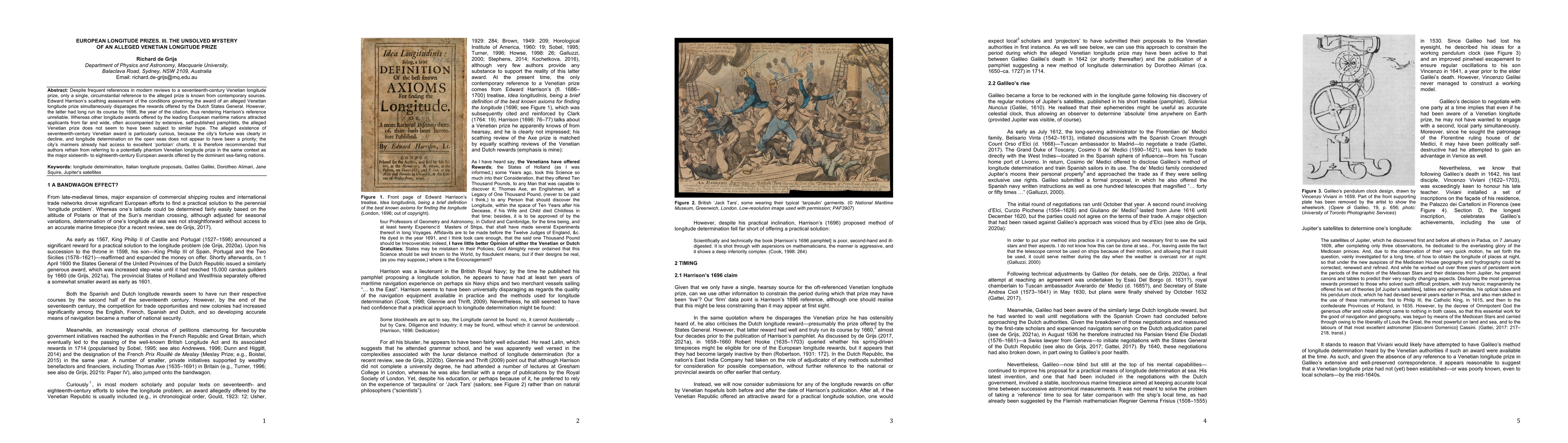 Despite frequent references in modern reviews to a seventeenth-century Venetian longitude prize, only a single, circumstantial reference to the alleged prize is known from contemporary sources. Edward Harrison's scathing assessment of the conditions governing the award of an alleged Venetian longitude prize simultaneously disparages the rewards offered by the Dutch States General. However, the latter had long run its course by 1696, the year of the citation, thus rendering Harrison's reference unreliable. Whereas other longitude awards offered by the leading European maritime nations attracted applicants from far and wide, often accompanied by extensive, self-published pamphlets, the alleged Venetian prize does not seem to have been subject to similar hype. The alleged existence of seventeenth-century Venetian award is particularly curious, because the city's fortune was clearly in decline, and longitude determination on the open seas does not appear to have been a priority; the city's mariners already had access to excellent "portolan" charts. It is therefore recommended that authors refrain from referring to a potentially phantom Venetian longitude prize in the same context as the major sixteenth- to eighteenth-century European awards offered by the dominant sea-faring nations.