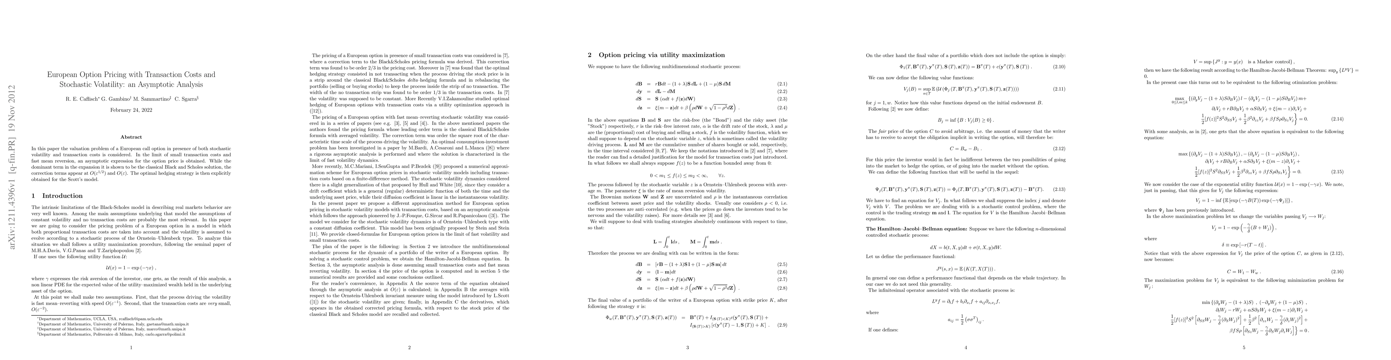 This paper derives an asymptotic pricing formula for European call options under stochastic volatility and transaction costs, showing that the classical Black-Scholes solution is the leading term, with correction terms appearing at $O(\varepsilon^{1/2})$ and $O(\varepsilon)$. The optimal hedging strategy is also determined for Scott's model.
