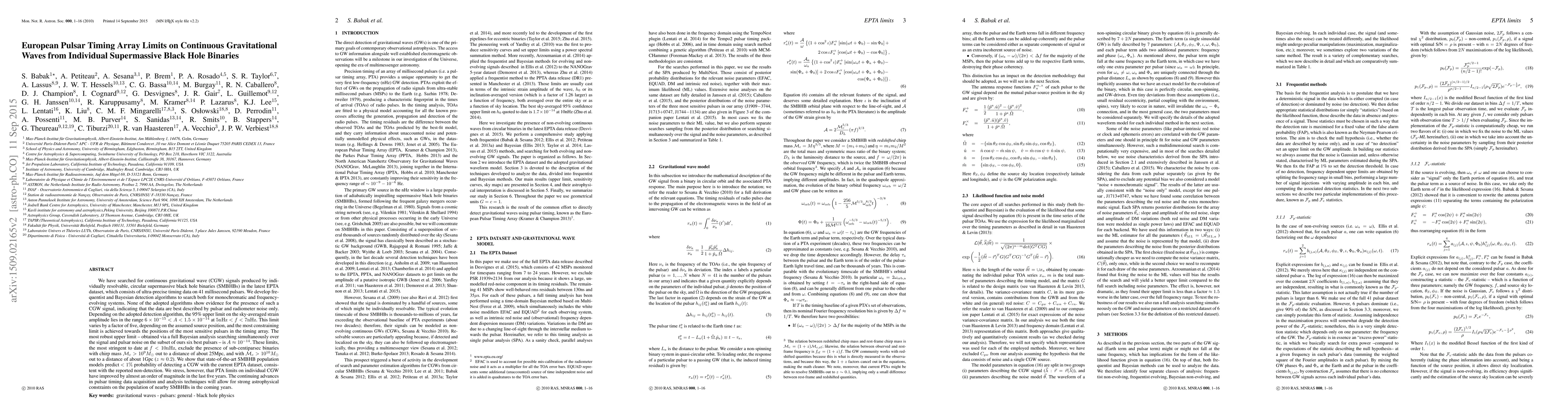 This research uses the European Pulsar Timing Array (EPTA) to search for continuous gravitational waves from supermassive black hole binaries, finding no evidence for such signals. The study sets stringent upper limits on the sky-averaged strain amplitude, improving constraints on the population of nearby supermassive black hole binaries.