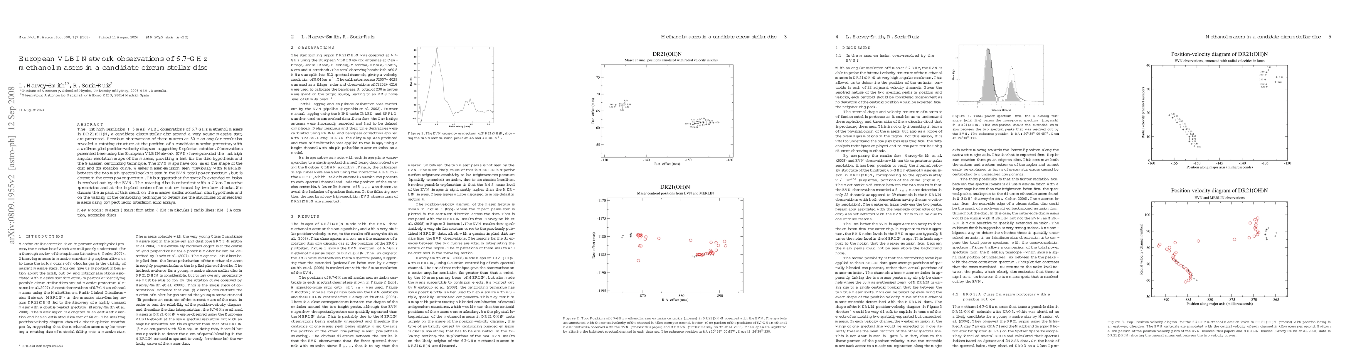 The European VLBI Network (EVN) provided high-resolution VLBI observations of 6.7-GHz methanol masers in DR21(OH)N, confirming a rotating disc structure around a young massive star and supporting the circumstellar disc hypothesis. The EVN observations also resolved weaker maser emission, indicating the technique's validity for studying unresolved masers.