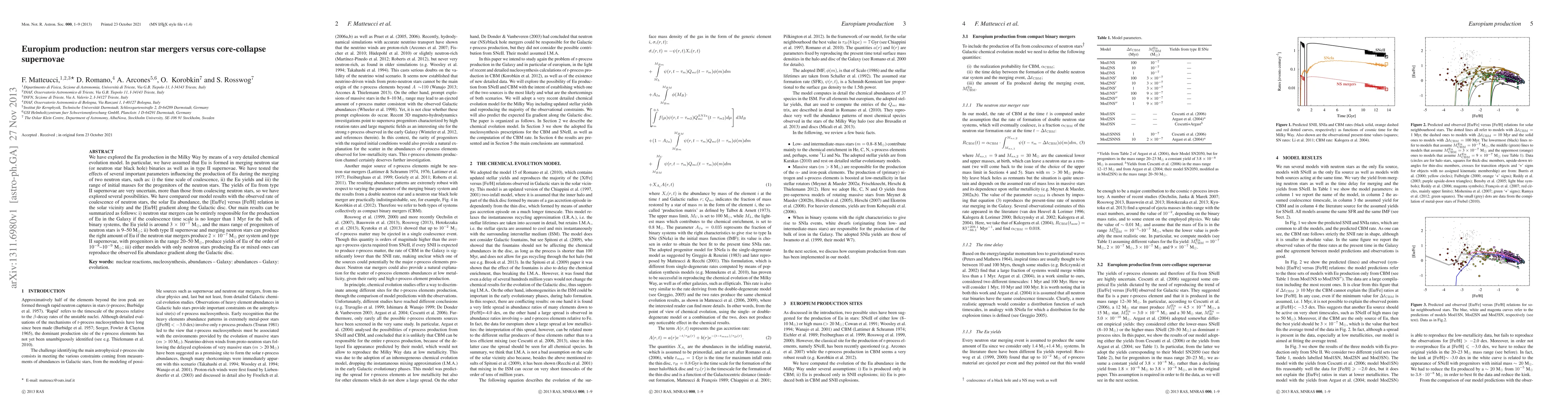 This research investigates the production of europium (Eu) in the Milky Way through detailed chemical evolution models, comparing contributions from neutron star mergers and type II supernovae. The study finds that neutron star mergers can fully account for Eu production under certain conditions, while mixed contributions from both sources can also reproduce observed Eu abundances and gradients.