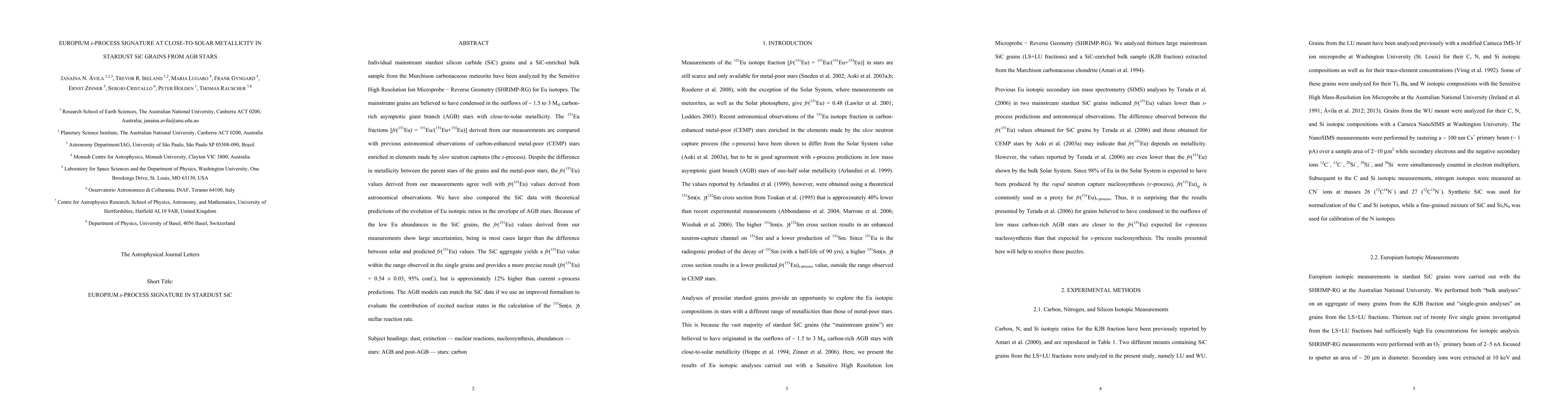This research analyzes SiC grains from AGB stars with close-to-solar metallicity, finding Eu isotopic ratios consistent with the s-process observed in metal-poor stars. The SiC aggregate data yield a precise Eu isotopic ratio, though it suggests a need for improved models of the 151Sm(n,g) reaction rate in AGB stars.